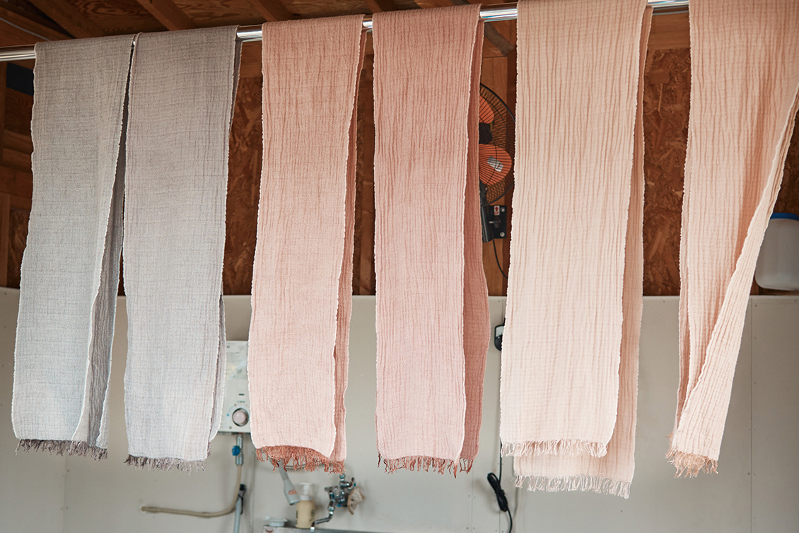 第二弾となる今回は、桜で染めたマフラーとして“旅の思い出をまとう”一品が完成しました。