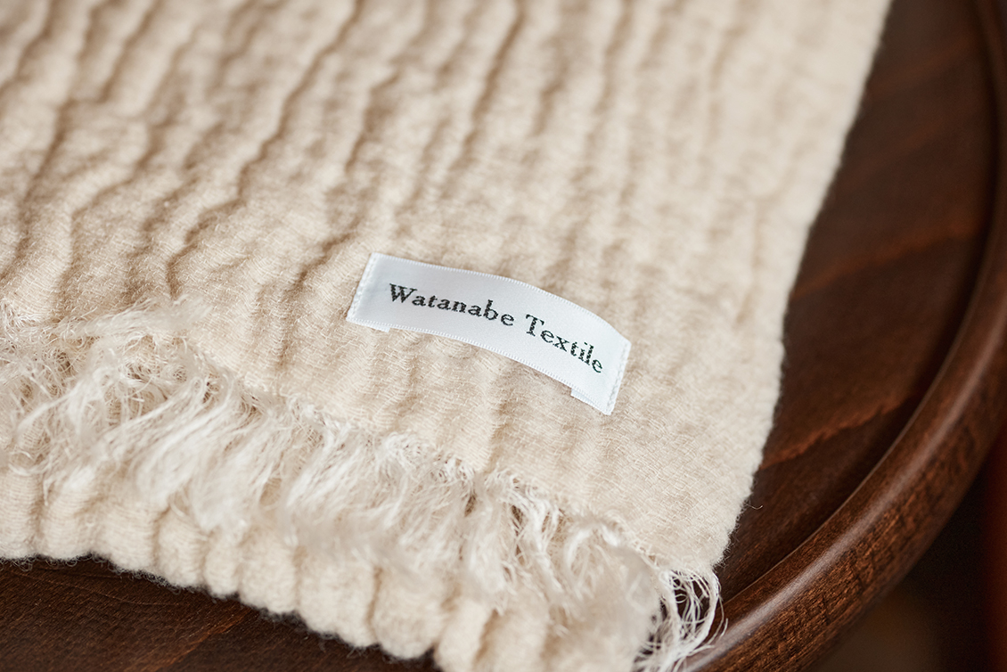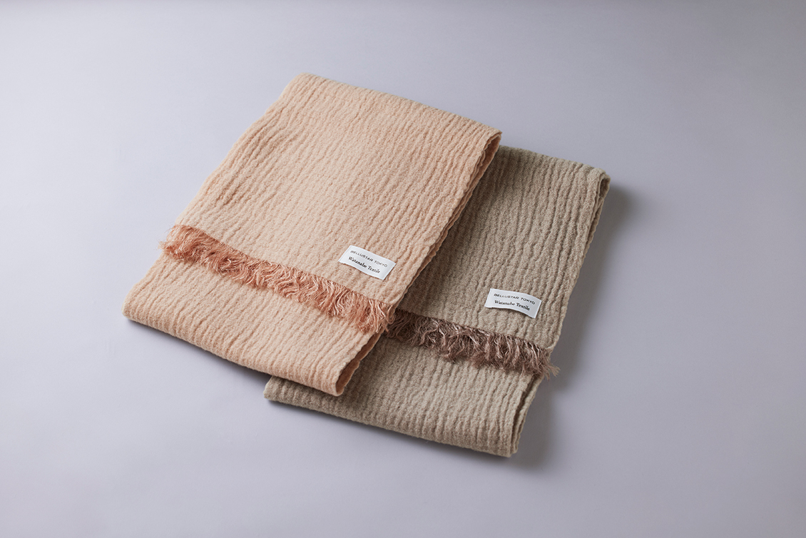 Watanabe Textileは、山梨県富士吉田市に拠点を置くテキスタイルブランド。自然から着想を得た美しい色彩と、現代的な織りの表現を追求。 前回の扇子制作でも織りの工程を担当し、今回はマフラーを共同開発。サステナブルな素材を軸に、自然の色合いや風合いを大切にしたものづくりの精神を、本プロジェクトでも受け継いでいます。